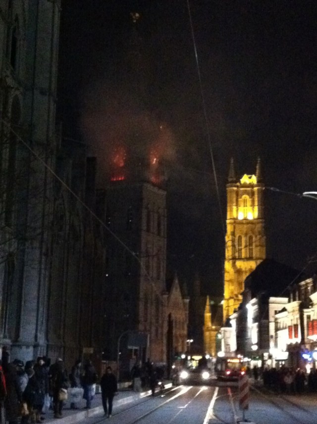 Nous admirons au passage le ‘The Big Fire of Ghent that never happened’ de Michael Langeder, qui comme je l’ai signalé plus haut, simule l’incendie de la tour du Beffroi.