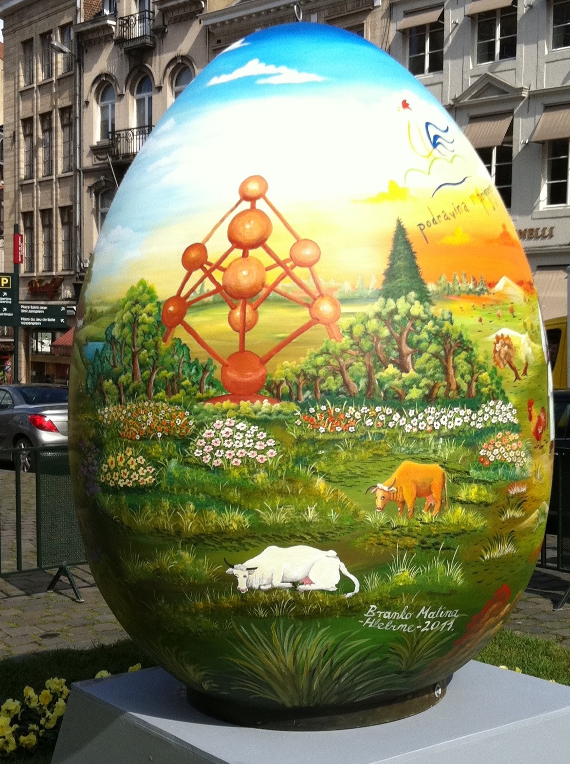 L’oeuf de Pâques qu’ils ont offert à la ville de Bruxelles est un charmant clin d’oeil aux instances concernées. Il est décoré de tableaux naïfs et exposé au bas du Grand Sablon.