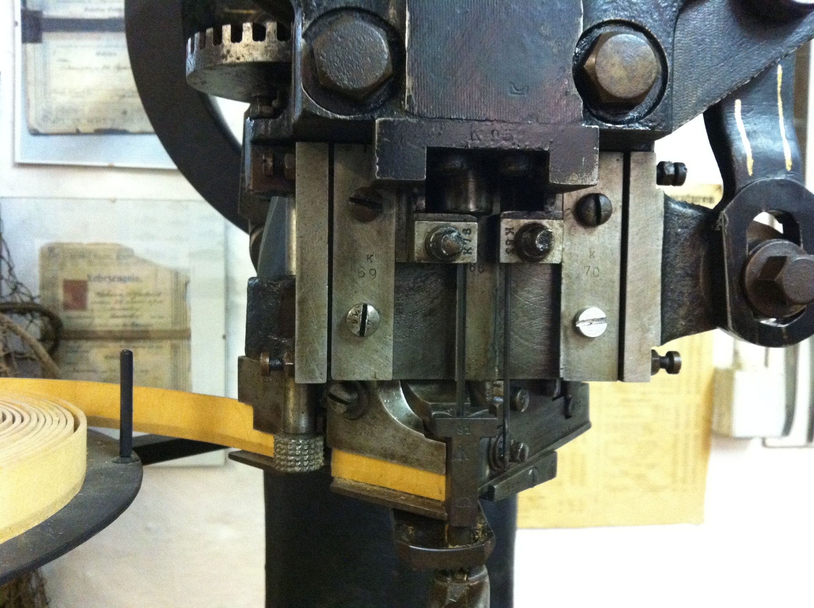 Nous y retrouvons la même étrange mais astucieuse machine, déjà vue dans la tour-musée de Lübz, utilisée par les cordonniers pour sertir les semelles des bottes avec des clous en bois.