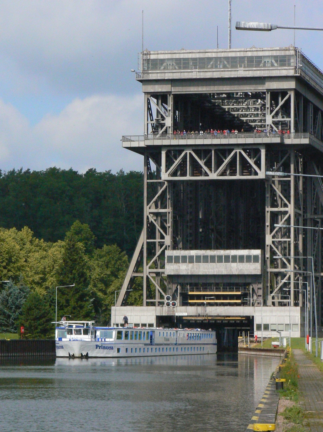 Nous sommes amarrés dans le bassin mobile de l’ascenseur fluvial de Niederfinow et