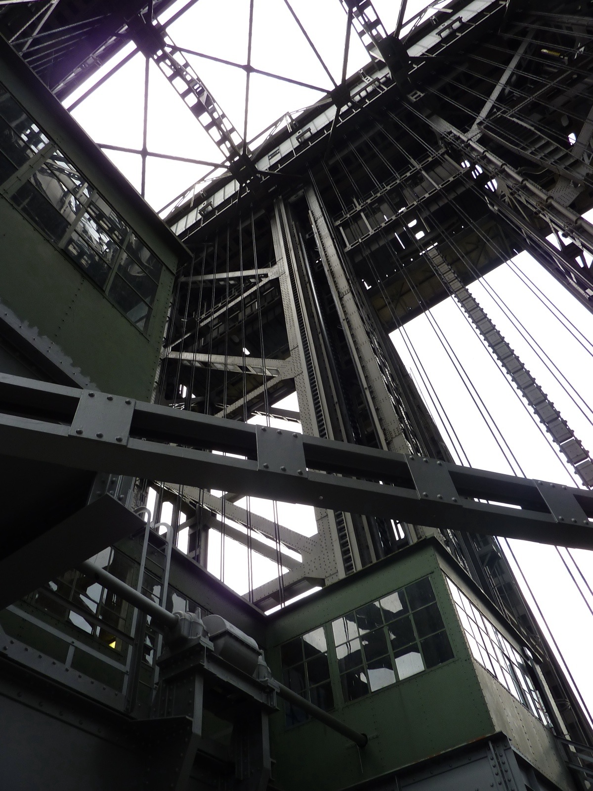 Au nord de l’ascenseur actuel on aperçoit les grues du chantier du nouvel élévateur qui doit permettre le passage de doubles barges qui alimentent en charbon Polonais les centrales électriques de Berlin, selon le skipper du Pamaki.