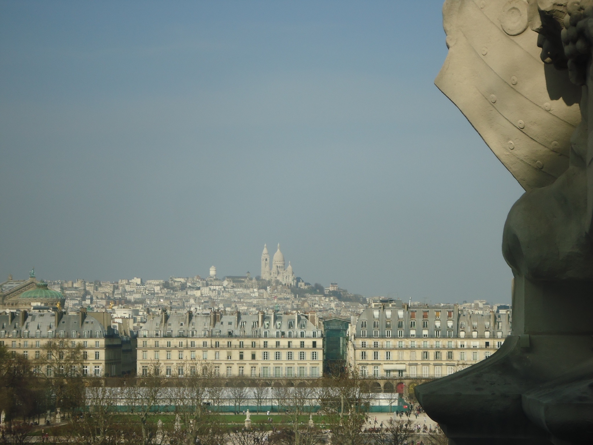 Les baies vitrées latérales du cinquième étage montrent Paris éclatant sous un soleil radieux, au loin, le sacré coeur paraît couvert de chaux blanche.