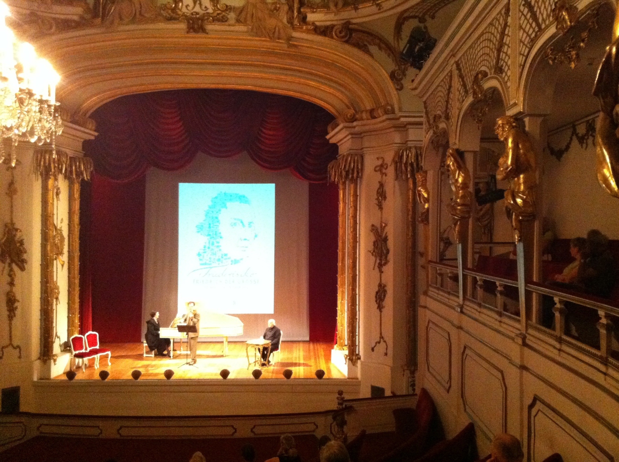 Le musée comporte un petit théâtre où nous aboutissons à la fin du parcours de notre visite. Il est 12:45, une guide nous signale la possibilité d’assister à un concert de musique baroque qui débute à 13:00.