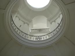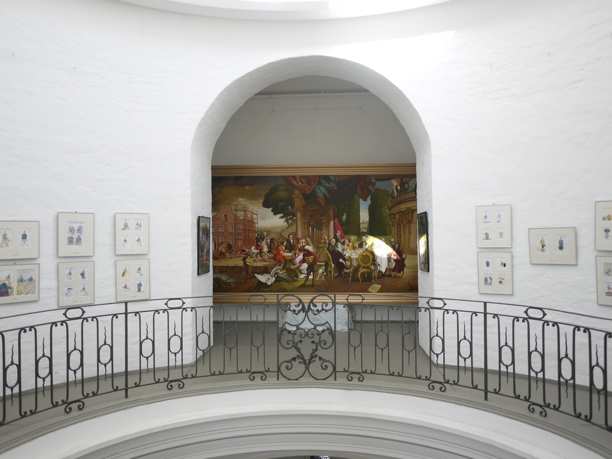 La cage d’escalier qui sert de salle à l’exposition aux dessins et tableaux satiriques, est selon la brochure une des plus grandioses d’Europe.