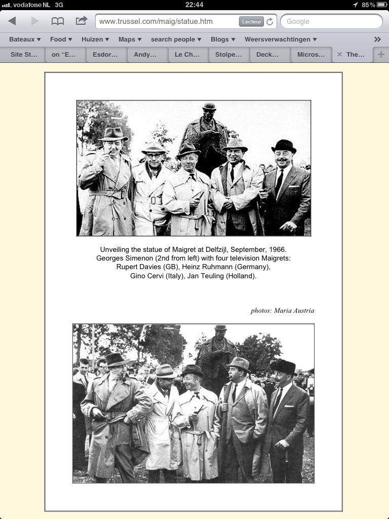 C’est lors de son séjour ici en 1929, il vivait sur un vieux bateau, que George Simenon imagina et prêta vie à son plus célèbre personnage; le roman s’intitule ‘Maigret en Hollande’.