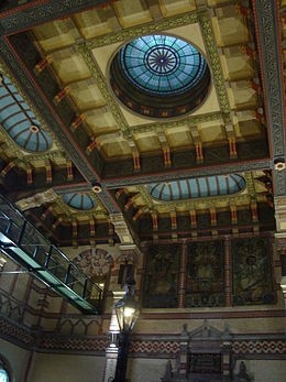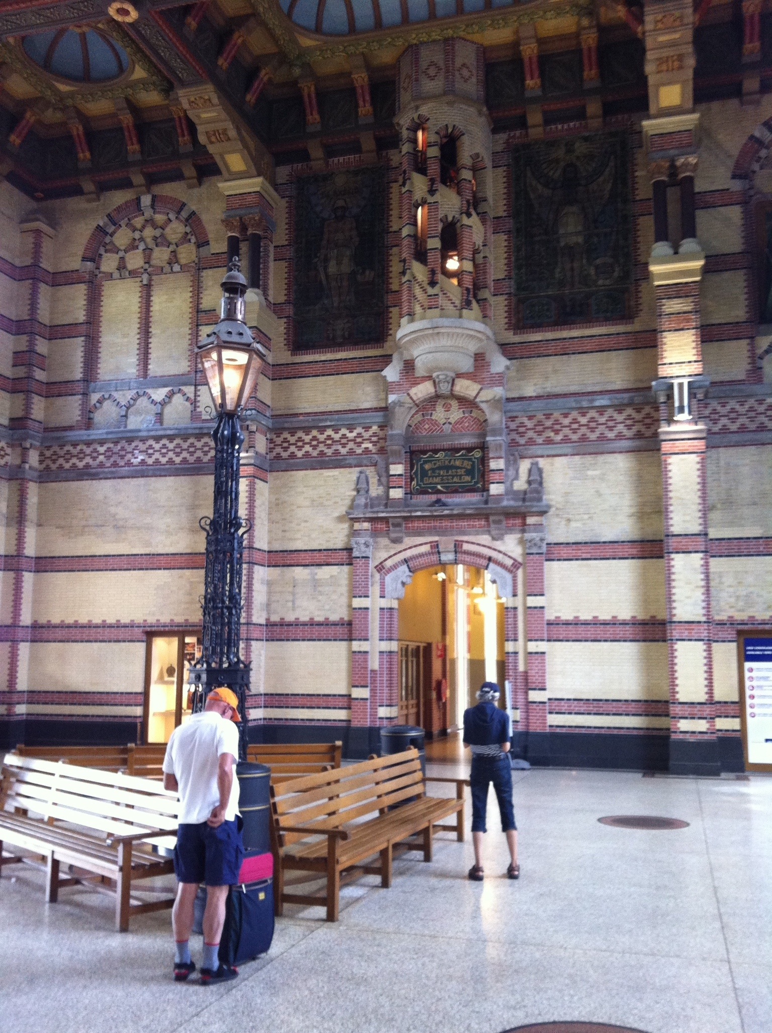 Remarquable contraste, en face, de l’autre côté du canal, se trouve la gare centrale. Construite en 1896 elle a été rénovée en 1999 et remise dans son état d’origine. Rien que le plafond en papier collé vaut le déplacement.