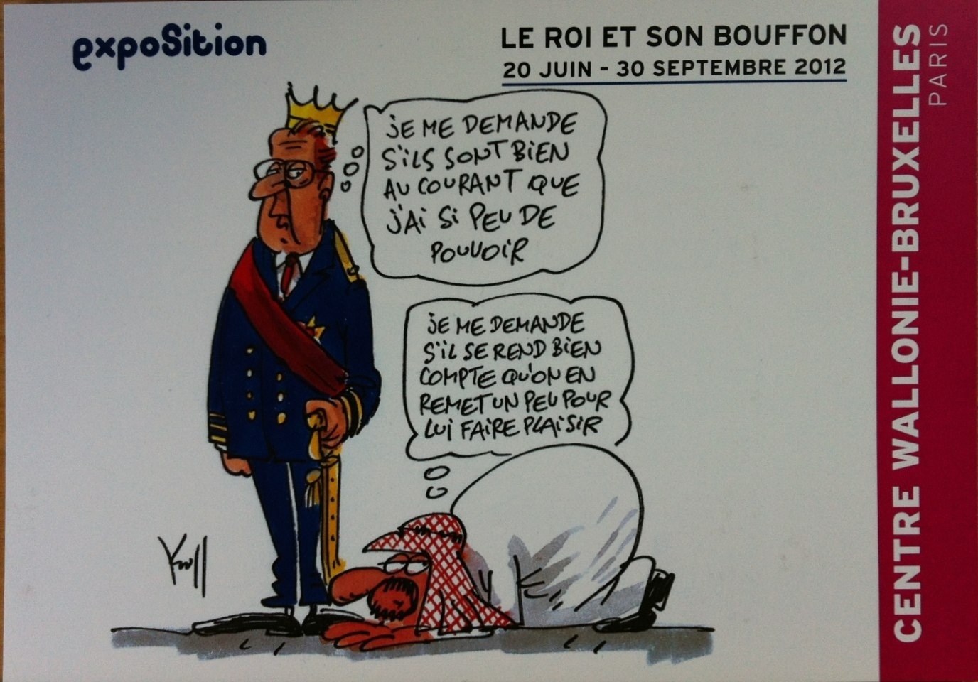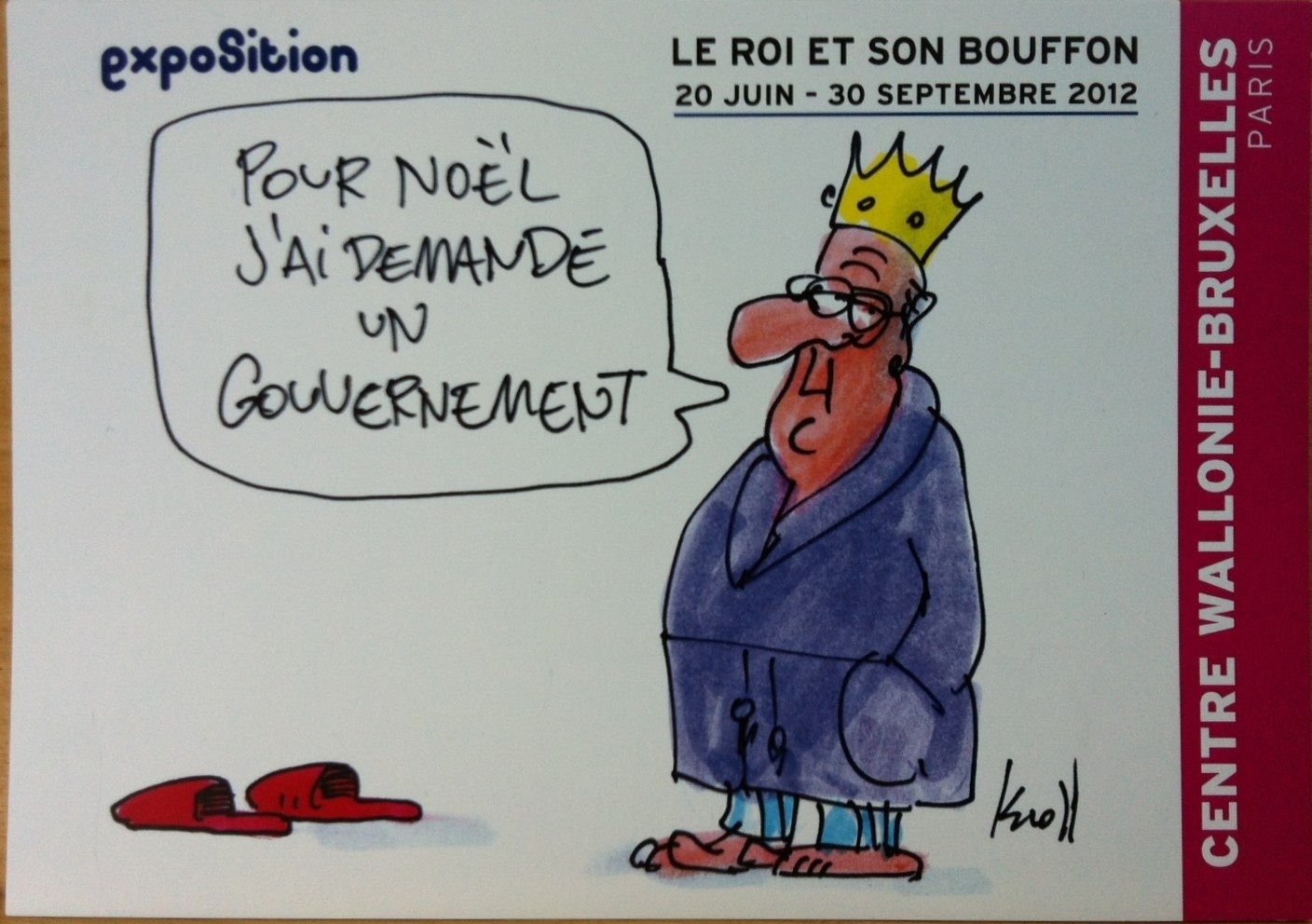 Nous venons ici pour rire avec les caricatures de Kroll, l’humoriste Belge qui depuis quelques années s’est spécialisé à mettre en couleur le Roi et sa famille. L’exposition est organisée au centre Wallonie-Bruxelles, 127-129 rue Saint-Martin, face à centre Pompidou.