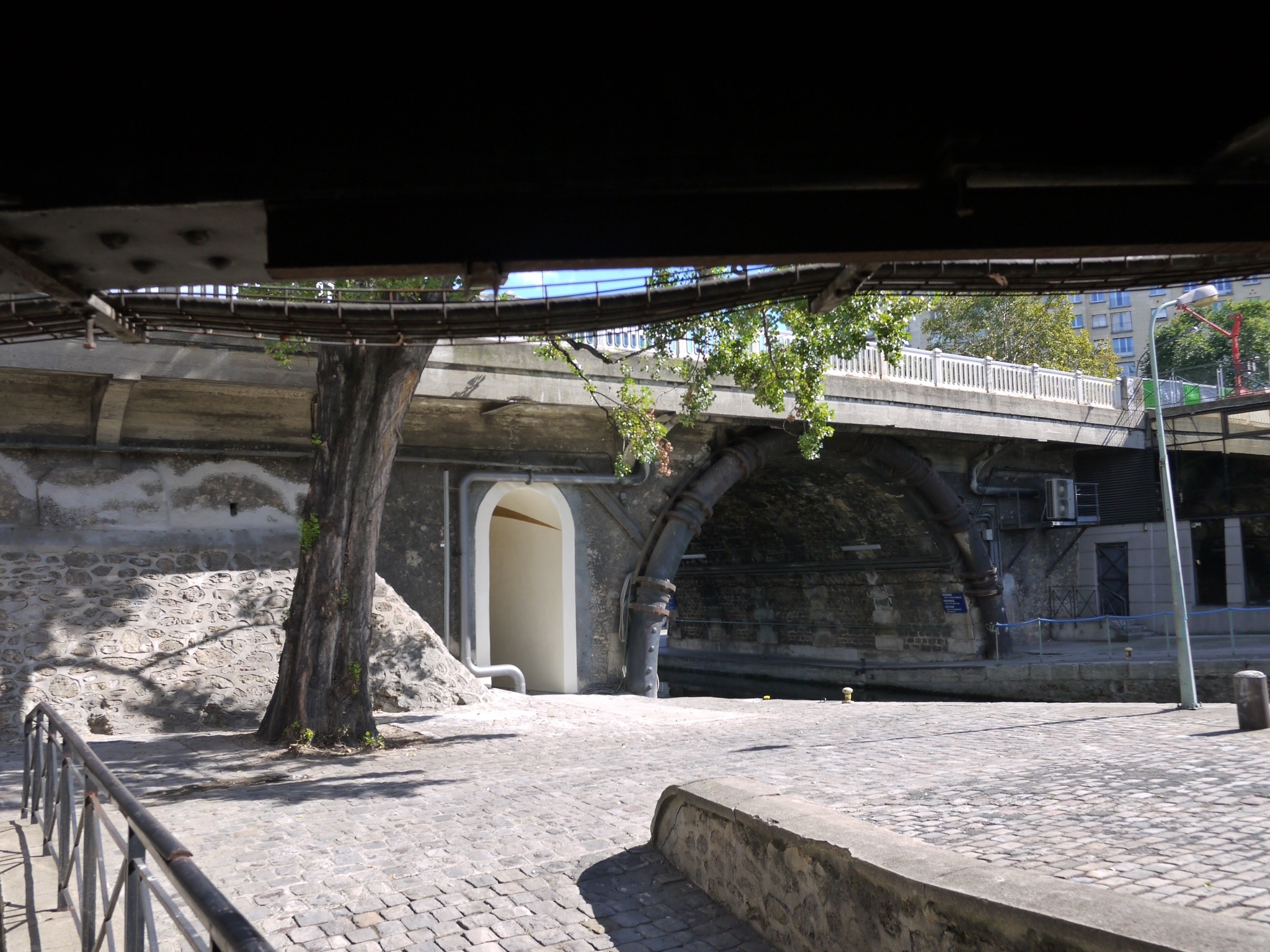 Il est surprenant le contraste entre la ville lumière située dix mètres plus haut, au niveau du chemin de ronde de l’ancien mur de l’enceinte Charles V avec sa vie bourdonnante d’activité, ses rues et ses boulevards encombrés de voitures et de touristes, les appareils photo en bandoulière et le guide de Paris en trois jours à la main, ses immeubles à habitation où les voisins de palier se connaissent à peine et s’ignorent, ses files d’attente devant les guichets du Louvre et de la tour Eiffel, les cadenas que les amoureux fixent à la rambarde de la passerelle des Arts, les boutiques de la rue Saint-Honoré, la manif de la CGT qui bloque la rue Matignon, d’une part.