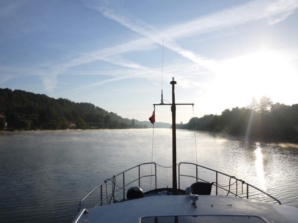 En fin de journée, le Chat Lune frappe ses amarres au coeur d’une petite ville de province, si il fait beau, nous y faisons un tour, parfois le hasard nous offre un marché local, une église peu connue, un château ou d’anciennes douves devenues parc, nous dînons à bord, finissons un livre et bercé par les eaux toujours en mouvement du fleuve, on dort comme des bienheureux.