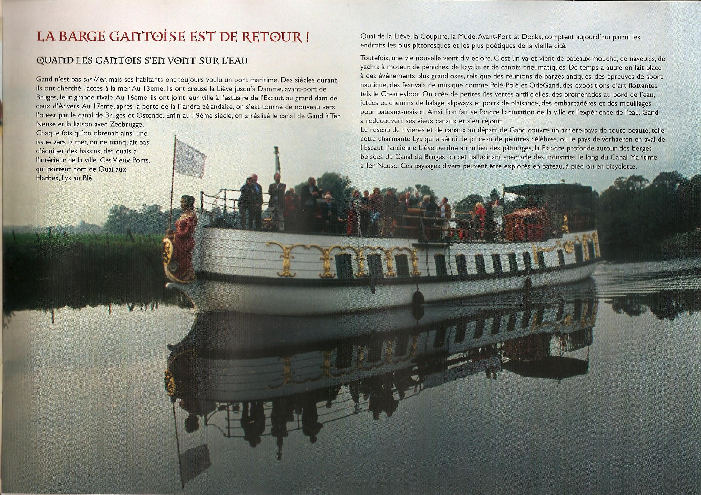 On doit la reconstruction de la barge à feu le capitaine André De Wilde, directeur général du port de Gand et à Walter De Buck, sculpteur et chanteur Gantois.