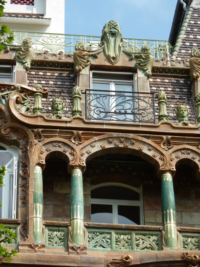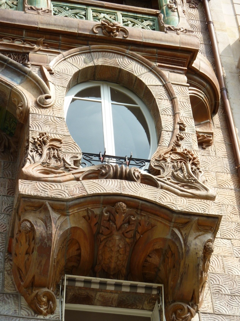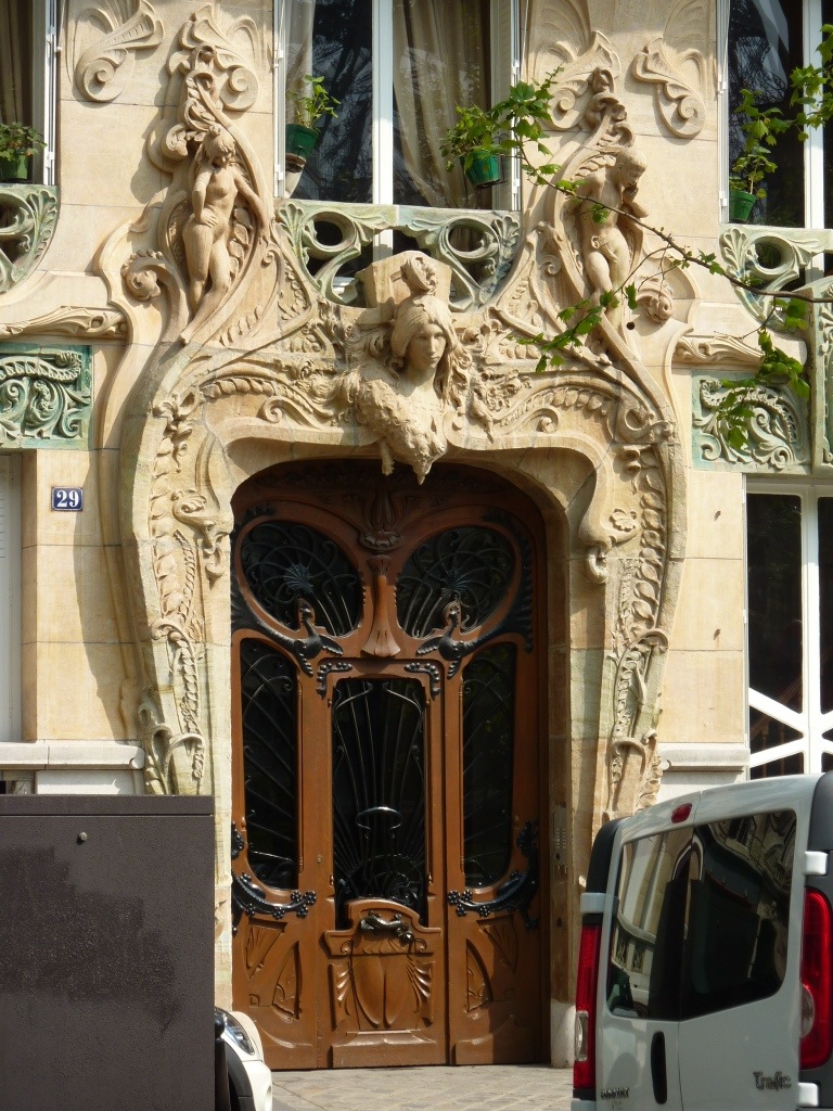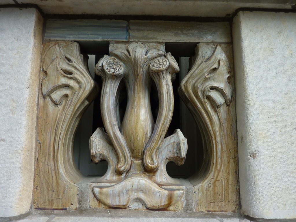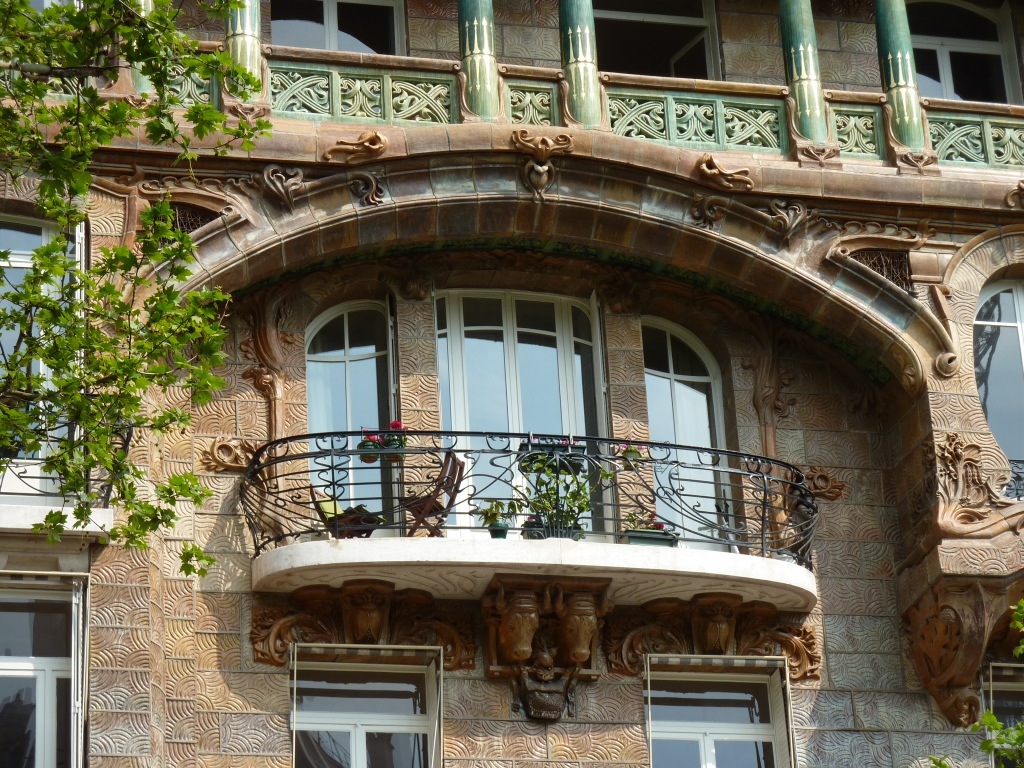 Un dernier coup d’oeil au pieds secs du Zouave et nous traversons le pont pour admirer, au 29 avenue Rapp, la façade Art Nouveau d’un immeuble élevé par Jules Lavirotte pour le céramiste Alexandre Bigot. Cette façade fut primée au concours de la ville de Paris en 1901. Vingt mètres plus loin, derrière le coin, au numéro 3 square Rapp, se trouve une deuxième maison avec façade Art Nouveau, du même architecte.