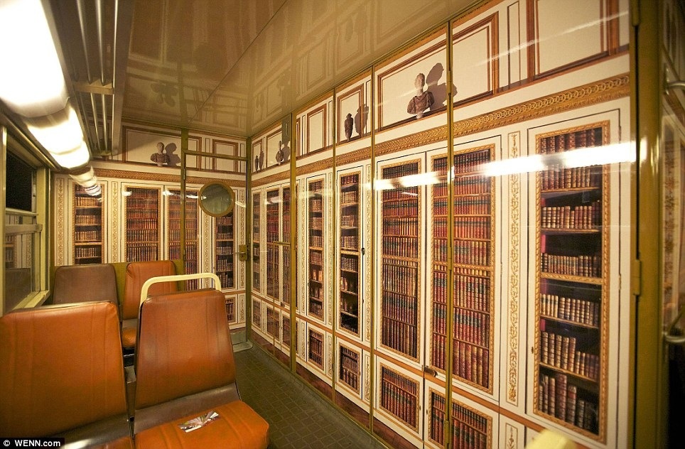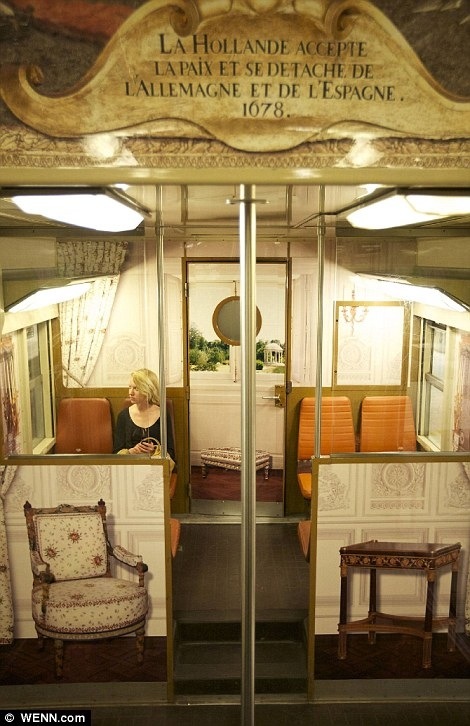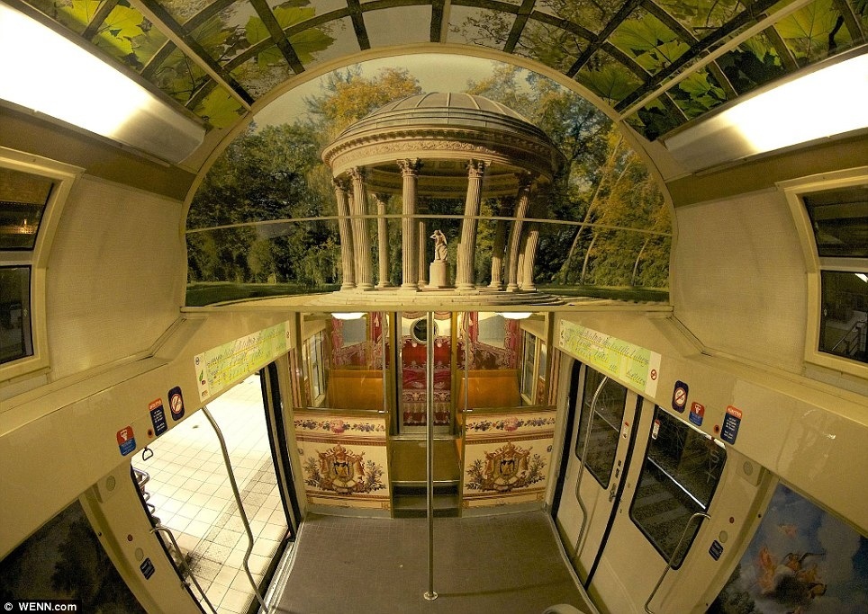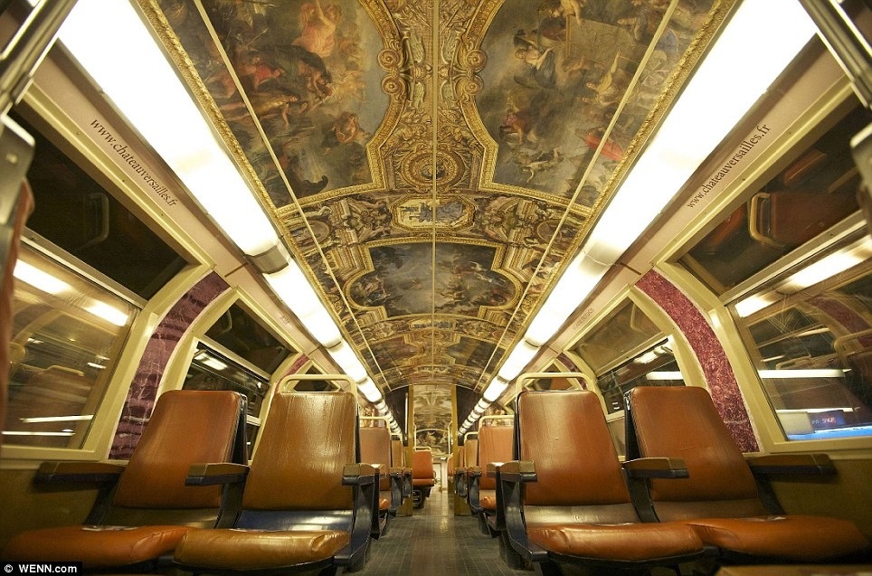 La ligne C du RER est celle de Versailles et le train qui nous mène d’Alma à Austerlitz est décoré avec des scènes du palais, telle que la Galerie des Glaces et une bibliothèque en trompe-l’oeil.