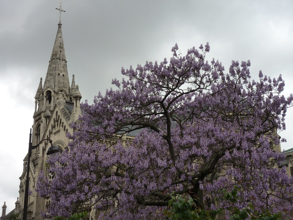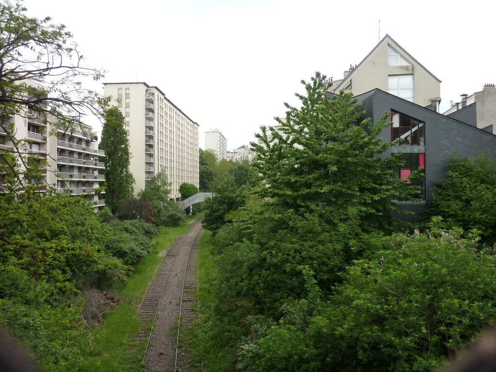 Dans la rue de Ménilmontant, l’église Notre Dame de la Croix avec ses 54 marches et les supports de la voûte en fonte, et plus haut, l’exposition d’art contemporain au pavillon Carré Baudoin. Au passage on franchit à gauche en montant les voies de l’ancienne petite ceinture ferroviaire et à droite le parc public Sobier-Bidassoa dans l’entrée duquel se trouvent six bouches d’aération enveloppées de buissons et de fleurs printanières, du tunnel dudit chemin de fer circulaire, faut l’savoir.