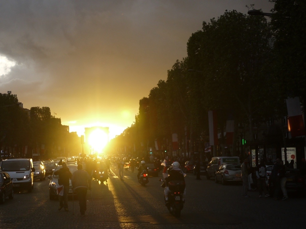 Lundi, les Champs Élysées pour admirer le soleil couchant dans l’arche de l’arc de triomphe et fuir vite les casseurs mêlés aux supporters du PSG que les policiers casqués pourchassent.