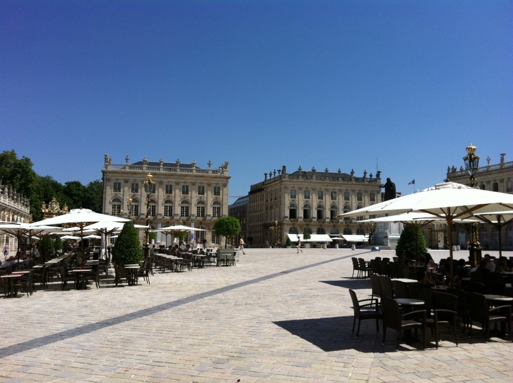 Les pavés de la place Stanislas réverbèrent la chaleur de cette journée ensoleillée mais le Tilley Hat sur le crâne, nous suivons l’itinéraire bleu du plan de la ville, pénétrons dans la cathédrale, traversons les ruelles de la vielle ville et vers 13:00 nous pénétrons dans une brasserie pour la fraîcheur et la formule bureau, à 10€ dessert et café inclus.