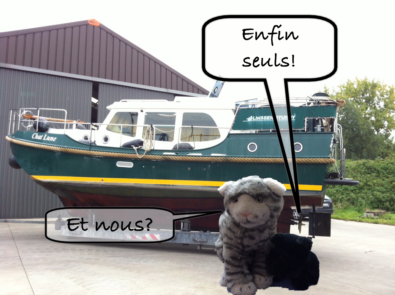 Le troisième jour nous conduit jusque Gent-Leie, notre endroit d’amarrage temporaire, d’où nous transférons le contenu flexible du Chat Lune vers notre domicile.