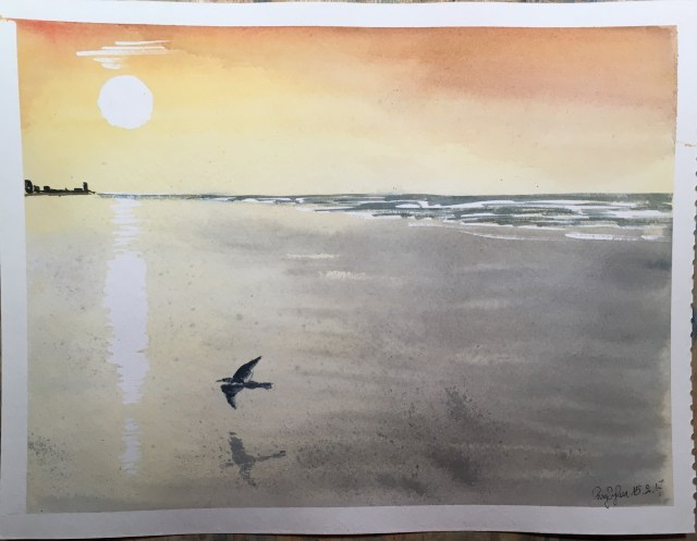 Aquarelles toutes en fraîcheur, j’adore l’ombre de l’oiseau sur le sable !!!!