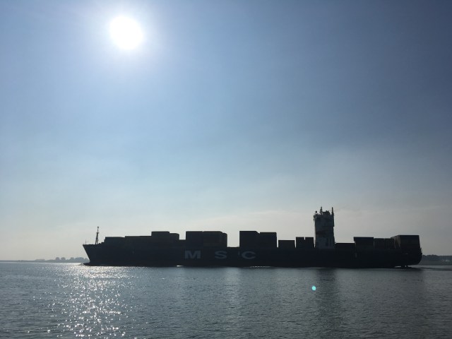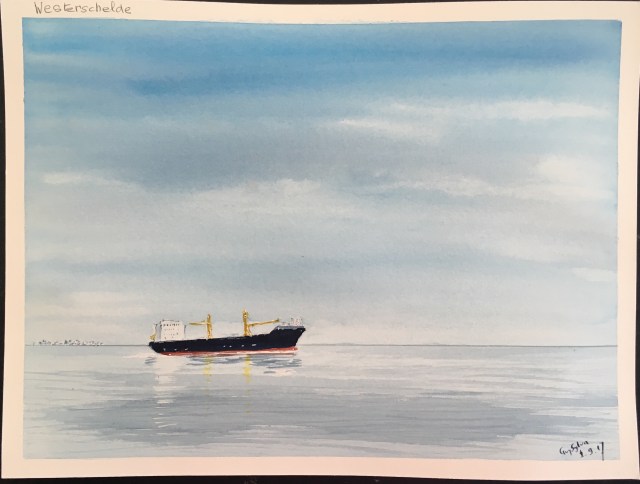Nous sommes arrivés à Terneuzen dimanche midi. La traversée de la Westerschelde est une traversée de rêve, ciel bleu, pas de vent, les seules vagues sont celles des cargos que nous croisons.
