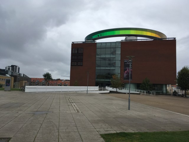 En route vers la ville, on s’informe auprès d’un conducteur de bus pour connaître les horaires. L’homme, d’origine indienne, s’esclaffe et nous demande avec son inimitable accent anglais: ‘Vous savez marchez? Le centre est à un quart d’heure, ne prenez pas le bus, vous allez épargner 2 fois 20 couronnes’. On le remercie et en effet, moins de 3 km, soit une bonne demi-heure plus tard, nous pénétrons dans le Kunstmuseum AROS de Aarhus.