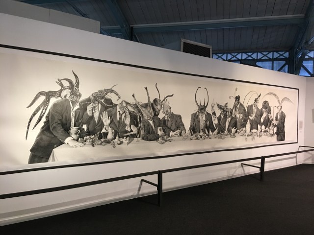 Contrairement aux artistes de l’Art Brut, leurs auteurs ont une formation artistique. Par contre, ils partagent l’obsession du travail minutieux et répétitif de ces derniers. Cela donne des créations étonnantes comme la dernière scène dessinée à l’encre de Chine avec une fine plume par Mad Meg. L’artiste a mis deux ans pour réaliser son œuvre. Les apôtres sont des hommes d’affaire en costume et cravate, leurs têtes sont des insectes.