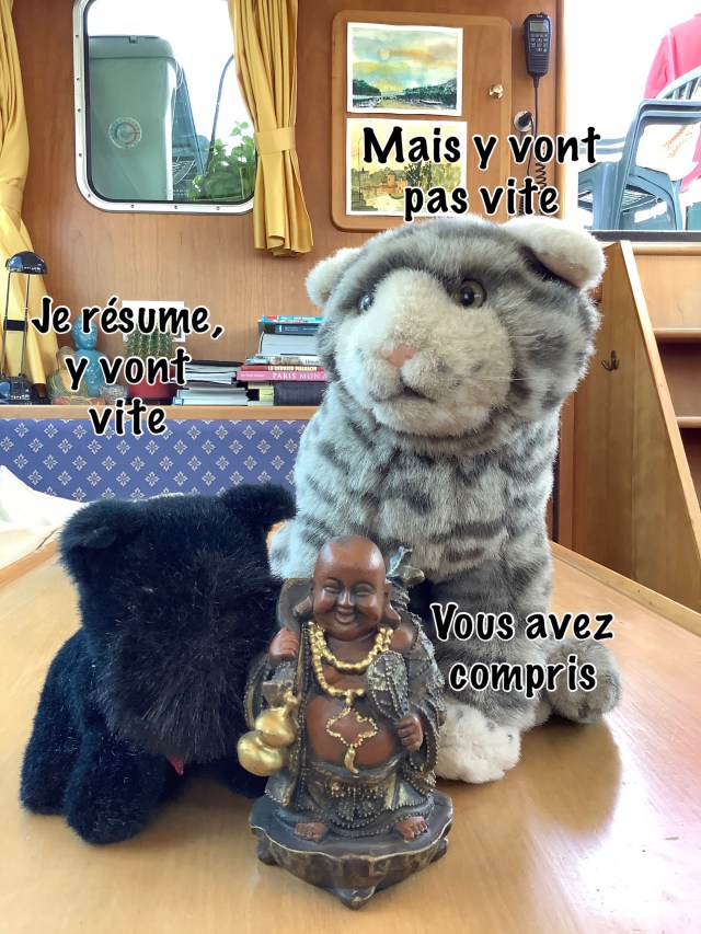 Les canaux que nous parcourons nous mènent régulièrement dans des régions où la réception radio et téléphonique est faible ou inexistante. Par conséquent notre accès à Internet l’est également. On se passe facilement des nouvelles du jour, les mails peuvent attendre et Marleen utilise l’accès à internet essentiellement pour jouer quelques parties de Scrabble avec ma sœur et quelques autres amies éparpillées en Europe. Le jeu accepte une interruption de 72 heures et au bout de trois jours, même en France profonde, on finit par trouver un signal. Personnellement, j’utilise Internet pour échanger des mails, pour consulter la météo et pour lancer mon billet hebdomadaire.