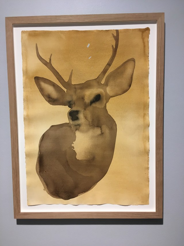En dehors de la pub, il peint des portraits, des rochers et des têtes de biches. Sa technique est remarquable, j’en suis soufflé, j’ai envie de balancer mes pinceaux et mes couleurs.
